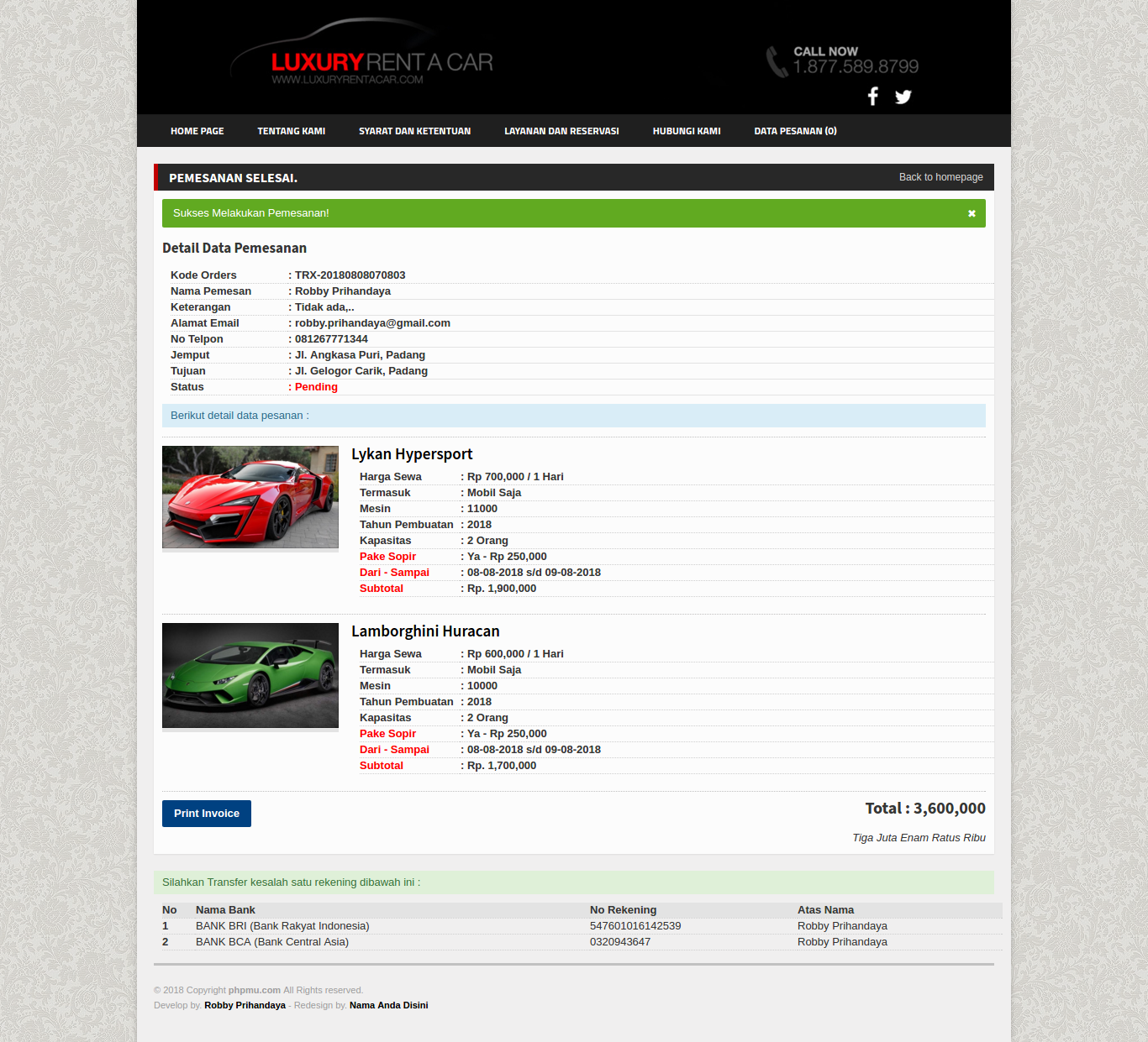 2. Support dengan Banyak No Rekening (Pembayaran Pemesanan Online)